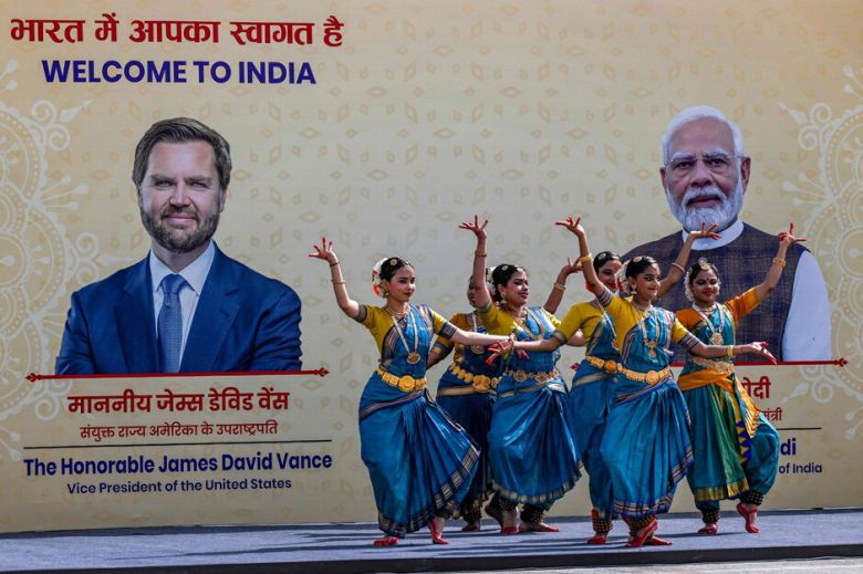 인도 전통의상을 입은 무용수들이 21일 제이디 밴스 미국 부통령이 인도를 방문하자 환영 공연을 펼치고 있다. 인도는 미국의 상호관세를 피하기 위한 조기 무역 협정 타결을 서둘러 왔다. AFP연합뉴스 |