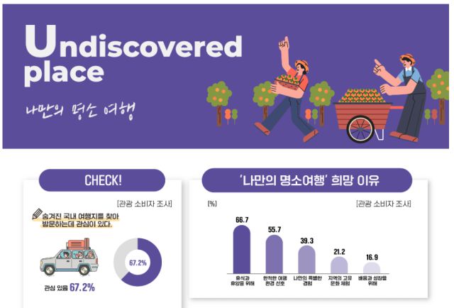 실제로 2023년 ‘로컬 관광’ 지난해 '나만의 명소 여행’ 등 유사한 키워드가 3년 연속 트렌드로 선정되면서, 로컬 여행은 반짝 유행이 아닌 하나의 고정 트렌드로 자리잡았다. 한국관광공사에 따르면, 지난해 기준 국내 여행객 10명 중 6.7명이 “숨겨진 국내 여행지를 찾아 방문하고 싶다”고 응답했다.