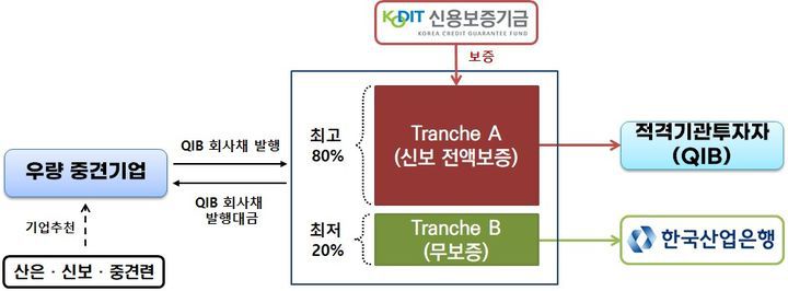 산은·신보·중견련은 각 기관의 네트워크를 기반으로 공모 회사채 시장에서 자립 가능성이 있는 '우량 중견기업'을 추천한다. 회사채가 적격기관투자자에게 매각되면 나머지 무보증부 회사채는 산은이 인수한다.