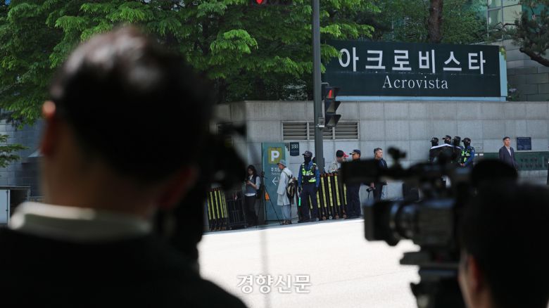 검찰이 윤석열 전 대통령 부부 사저를 압수수색한 30일 서울 서초구 윤 전 대통령 사저 앞에서 취재진들이 대기하고 있다. 정효진 기자