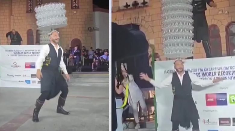 [영상] 머리 위 와인잔 468개...세계 기록 춤꾼의 '글래스 댄싱'