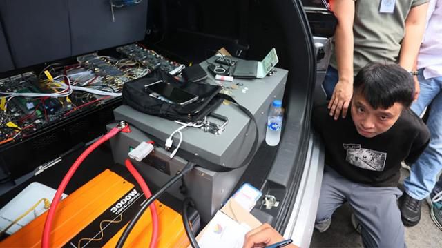 29일 필리핀 마닐라 선거관리위원회 본부 인근에서 선거 정보를 도청하려던 중국인 탁호이라오가 필리핀 국가수사국 요원에 체포되고 있다. 차량 안으로 도청 장치가 보인다. 필리핀 인콰이어러 캡처 |