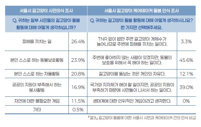 길고양이 돌봄 활동에 대해 케이테이커와 일반 시민들 사이에 인식 차이가 있었습니다.