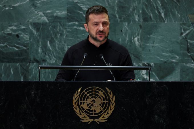 유엔 총회에서 연설하는 볼로디미르 젤렌스키 우크라이나 대통령. [사진=로이터 뉴스핌]