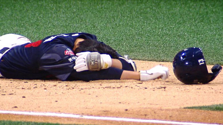 [중계 해설 : 지금 머리 쪽에 맞은 것 같아요. 부상이 아니어야 하는데요.]