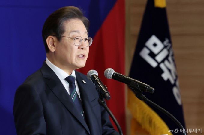 [서울=뉴시스] 권창회 기자 = 이재명 더불어민주당 대선 후보가 30일 오후 서울 여의도 국회 의원회관에서 열린 더불어민주당 제21대 대통령선거 '진짜 대한민국' 중앙선거대책위원회 출범식에서 연설을 하고 있다. 2025.04.30. kch0523@newsis.com /사진=권창회 |