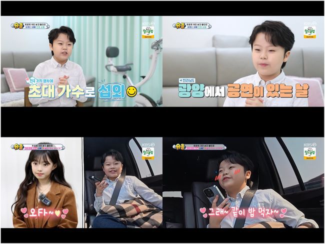 30일 방영한 KBS2TV 예능 ‘슈퍼맨이 돌아왔다’(이하 ‘슈돌’)에서는 광양으로 행사를 떠나는 길에 오지율과의 친분을 드러낸 황민우의 모습이 공개됐다.
