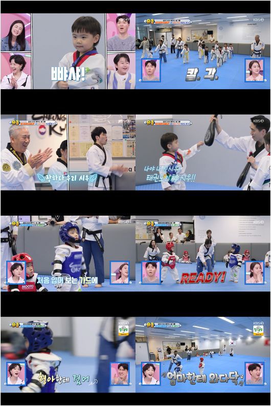 이제는 어엿하게 태권도 사범으로서 아들과 함께 홍콩에서 다섯 개의 도장을 운영 중인 우종필. 신민철은 “홍콩에서 발차기와 지르기로만 자리를 잡으신 거다. 홍콩에만 장인어른 도장이 다섯 개가 있다”라며 처가를 자랑스럽게 소개했다. 이날 신민철, 우종필, 그리고 시우의 외삼촌이자 우혜림의 오빠 우태권까지 태권 품새를 선보이기도 해 시선을 끌었다./osen_jin0310@osen.co.kr