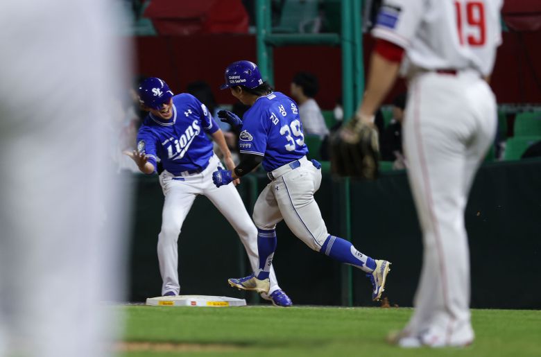 삼성은 9회초 노경은 상대 선두 류지혁의 타구가 담장 앞에서 한유섬의 호수비로 잡혔으나, 박병호가 좌전안타로 출루한 뒤 윤정빈이 볼넷으로 걸어나가 1사 1・2루의 찬스를 잡았다. 투수가 조병현으로 바뀐 뒤 대타 김영웅은 삼진으로 물러났고, 이재현은 땅볼로 물러나며 득점에 실패했다.