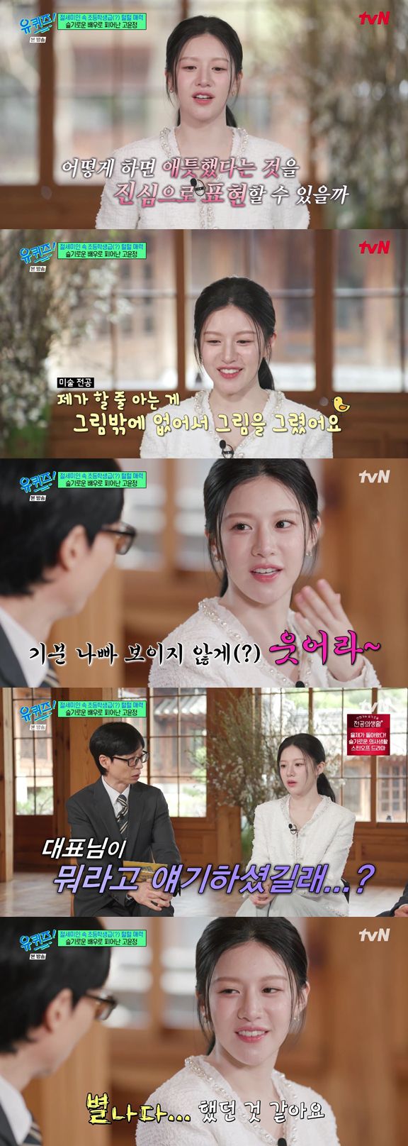 (엑스포츠뉴스 윤현지 기자) '유퀴즈' 고윤정이 배우를 하게 된 계기를 밝혔다.