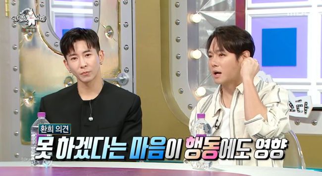 환희는 지난 출연에 대해 "브라이언이 여기 저기 얘기해서 해명할 곳이 없었는데 지난 출연에 다 얘기해서 너무 좋았다"라며 "토크쇼가 아직 어색함이 있는데 옆에 전진 형이 있어서 좋았다"라고 말했다.