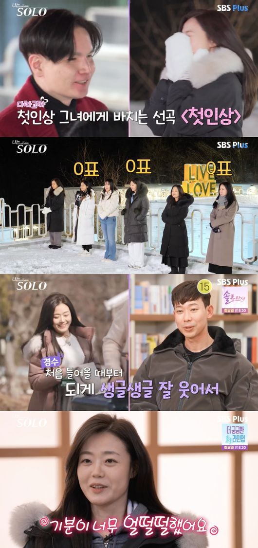 이날 남자들의 첫인상 선택이 진행됐다. 남자들의 선택을 받은 솔로녀는 함께 ’천국의 계단’을 올라가 설경 감상과 3분간의 달콤한 대화로 마무리 되는 방식이었다.