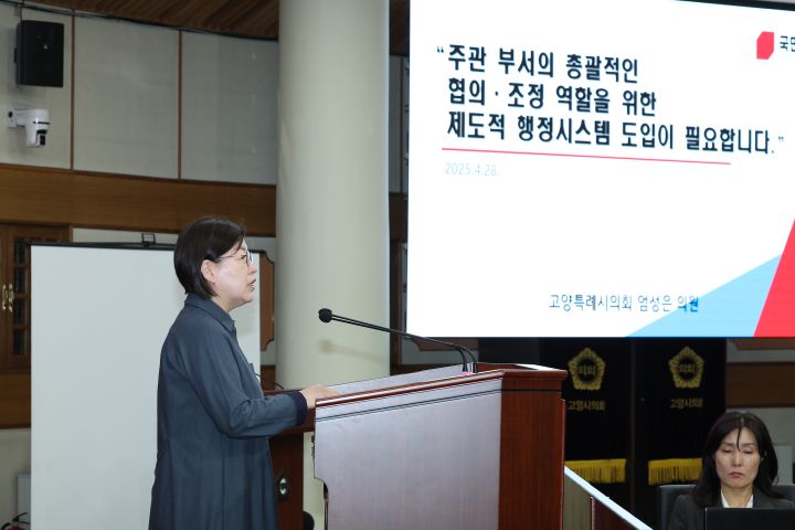 고양시의회 엄성은 의원(국민의힘, 정발산동·중산1·2동·일산2동)이 고양시의 대규모 도시개발사업 추진 과정에서 나타나는 부서 간 협의 부족 문제를 지적하며, 총괄 협의·조정 기능 강화를 위한 제도적 행정 시스템 도입을 강력히 촉구했다.