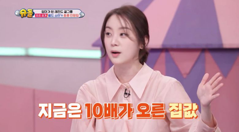 우혜림은 "부모님이 IMF 때, 집값이 떨어졌을 때 운 좋게 샀고 지금 10배가 올랐다고 한다"고 설명했다. 안영미는 "이런 얘기 들으면 배 아프더라"고 너스레를 떨어 웃음을 안겼다.