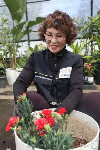 김 씨의 주 업무는 장식용 화훼를 재배하고 장식하는 일이다. 환갑을 훌쩍 넘긴 나이가 무색할 정도로 열정적이다.