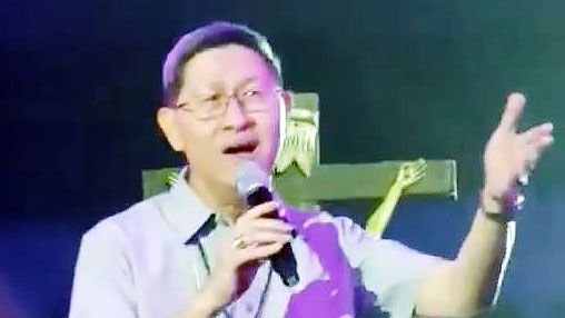 2019년 한 행사에서 존 레넌의 '이매진' 부르는 타글레 추기경. 사진 이탈리아 일간지 코리에레델라세라 캡처 |