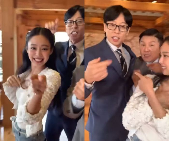영상에는 제니가 유재석, 조세호와 함께 솔로 1집 '루비' 타이틀곡 'like JENNIE' 챌린지를 하는 모습이 담겼다.