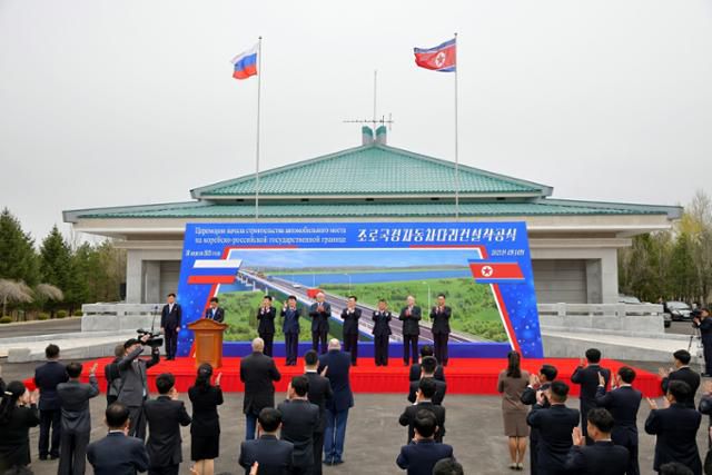 북한 노동신문은 이날 “쌍무교류와 협력을 강화하기 위한 실천적 조치들이 적극 취해지고 있는 속에 조로(북러) 국경 자동차다리 건설이 착공됐다”고 보도했다. 이는 북러가 지난해 6월 맺은 '포괄적인 전략적 동반자 관계에 관한 조약'(북러조약)에 따른 것이다. 이날 착공식은 북한 나선과 러시아 하산에서 동시에 진행됐다.