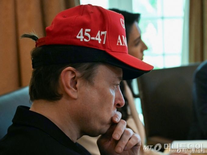 (워싱턴 AFP=뉴스1) 우동명 기자 = 일론 머스크 테슬라 최고경영자(CEO)이자 미국 정부효율부(DOGE) 수장이 30일(현지시간) 워싱턴 백악관에서 도널드 트럼프 대통령 주재로 열린 각료회의에 참석하고 있다. 2025.05.01  ⓒ AFP=뉴스1  Copyright (C) 뉴스1. All rights reserved. 무단 전재 및 재배포,  AI학습 이용 금지. /사진=(워싱턴 AFP=뉴스1) 우동명 기자