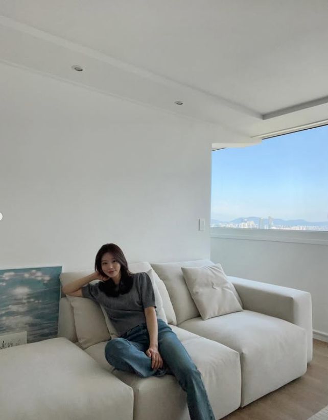 공개된 사진 속에는 한강이 한눈에 내려다보이는 거실에서 여유로운 일상을 보내는 이주빈의 모습이 담겼다.