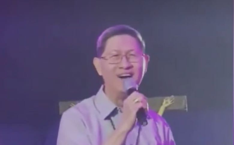타글레 추기경이 2019년 존 레넌의 '이매진(Imagine)'을 부르고 있다. /코리에레델라세라 |