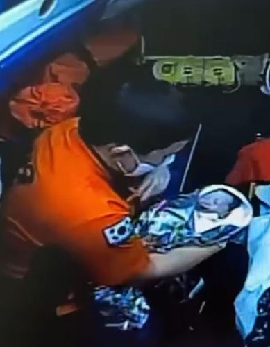 이들 구급대원은 신생아의 건강 상태를 확인하며 탯줄을 자르고 보온을 유지하기 위해 조치했다.