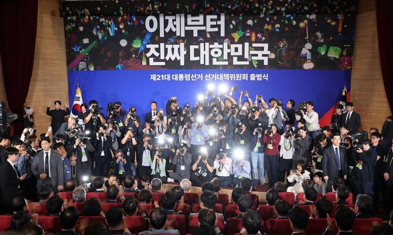 지난 30일 서울 여의도 국회 의원회관에서 더불어민주당 제21대 대통령선거 '진짜 대한민국' 중앙선거대책위원회 출범식이 열리고 있다. 연합뉴스 |