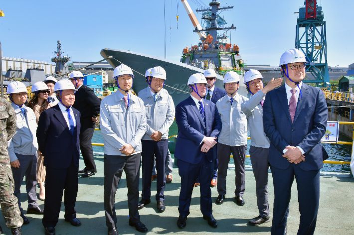 펠란 장관은 HD현대중공업이 건조해 대한민국 해군에 지난해 11월 인도한 '정조대왕함'에 직접 승선했다. 함장으로부터 세계 최정상급 이지스함 정조대왕함의 뛰어난 성능과 첨단 작전 능력 등에 대한 설명을 들었다.