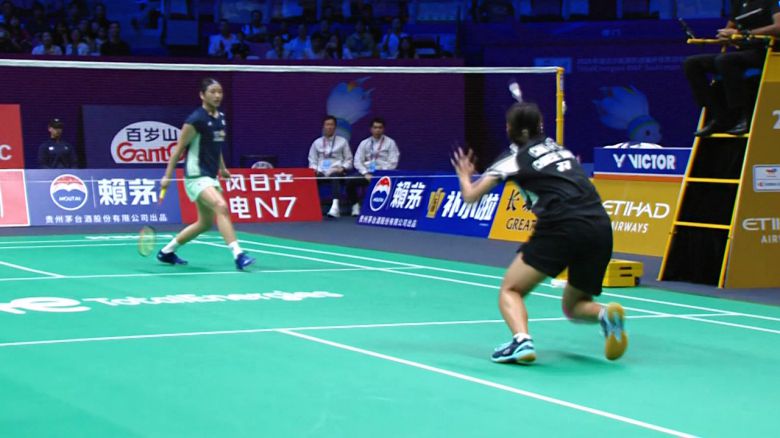 밀고 당기듯 이어지는 셔틀콕의 전환, 상대는 참지 못하고 속상함을 드러내 봅니다.