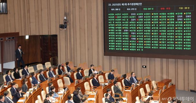 [서울=뉴시스] 권창회 기자 = 1일 서울 여의도 국회에서 열린 제424회 국회(임시회) 제7차 본회의에서 2025년도 제1회 추가경정예산안이 통과되고 있다. 2025.05.01. /사진=권창회 |