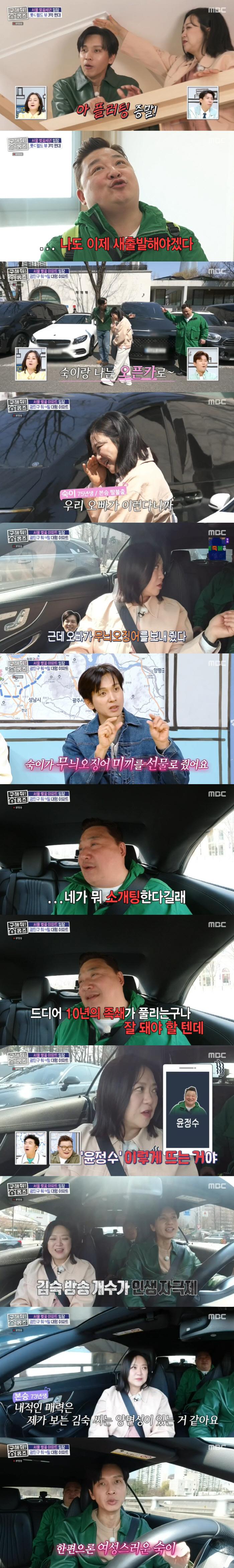 이날 스튜디오에 윤정수와 구본승이 함께 출연, 김숙은 "잘못된 거 아니냐. 눈치 껏 한 명은 안 나왔어야 하는 거 아니냐"며 당황했다.