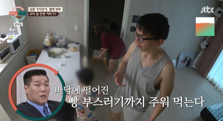 이어 아내는 떨어진 빵 부스러기와 본인이 먹다 남긴 샐러드도 남편에게 "다 주워 먹어"고 명령했고, 심지어 바닥에 떨어진 빵 부스러기까지 남편은 아내의 말대로 주워 먹었다. MC 서장훈은 "본인의 의지로 절약하는 걸 뭐라 하는 게 아니라 남편은 대체 뭐냐. 복수도 아니다. 멀쩡한 (음식을) 주는 것도 아니고 먹다 남은 찌개 같은 것도 그렇고. 이렇게 사는 건 아니다"며 답답해했다.