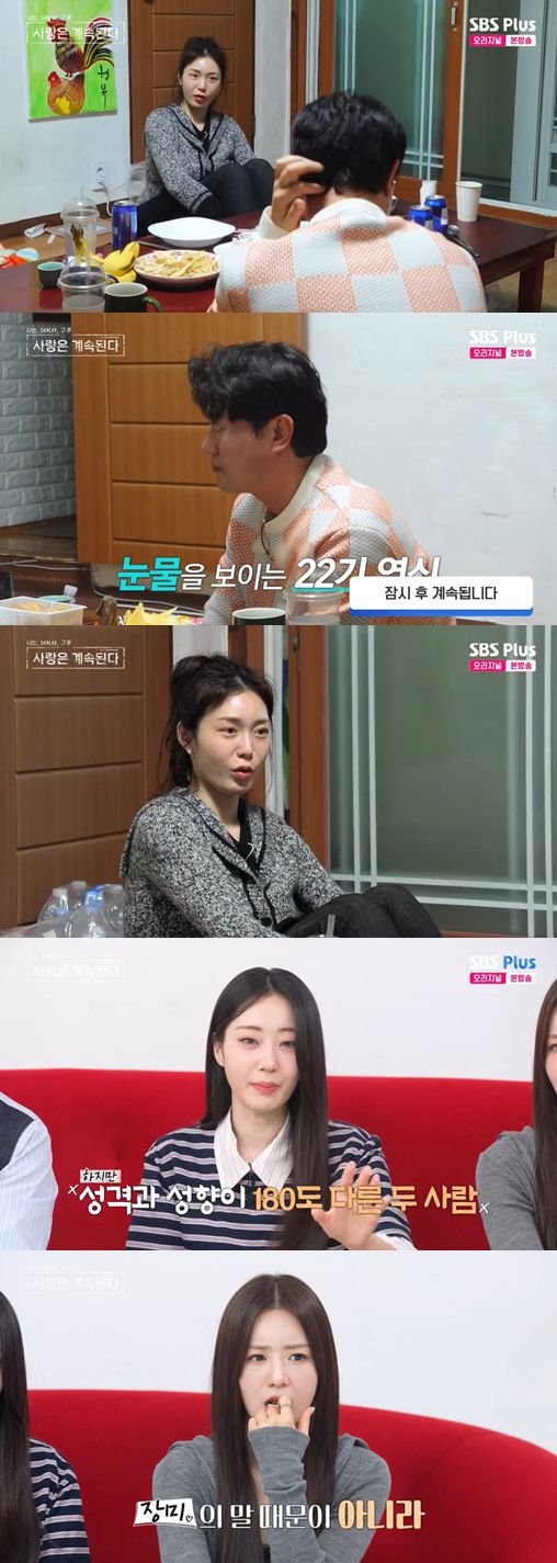 이를 듣던 경리는 "장미씨는 다 정직했으면 좋겠는데 자기 기준에서 그런 게 아니었다는 걸 말하고 싶었던 것 같아요. 근데 둘이 성격이랑 성향이 너무 안 맞는다"라고 말했고, 22기 영식은 갑자기 눈물을 보였다.