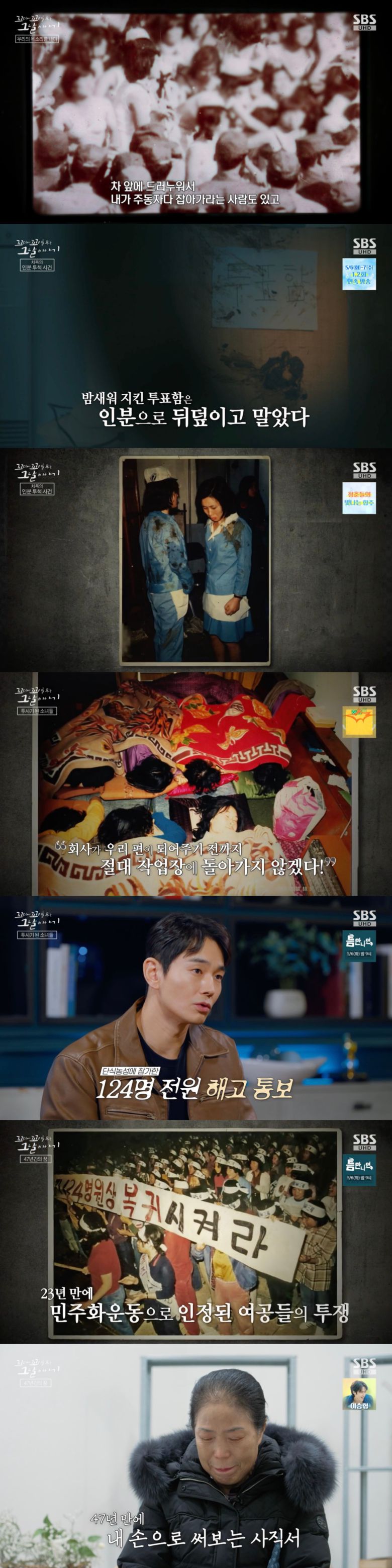 1일 방송된 SBS '꼬리에 꼬리를 무는 그날 이야기'(이하 '꼬꼬무')에서는 '꿈의 직장 속 수상한 비밀'이라는 부제로 47년간 꺾이지 않은 여공들의 처절한 외침에 주목했다.