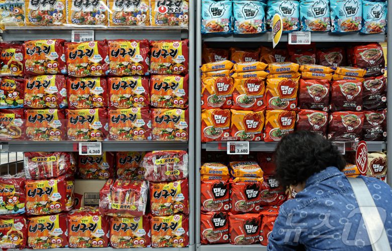 서울 시내 한 대형마트에 진열된 라면. 2025.4.22/뉴스1 ⓒ News1 김도우 기자 |