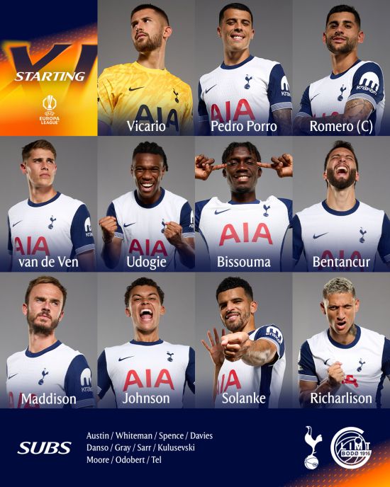 이날 홈팀 토트넘은 4-2-3-1 전형으로 나섰다. 굴리에모 비카리오 골키퍼가 장갑을 꼈고 데스티니 우도기, 미키 판 더 펜, 크리스티안 로메로, 페드로 포로가 수비를 구축했다. 3선은 이브스 비수마, 로드리고 벤탄쿠르가 나와 수비를 보호했다. 2선은 히샬리송과 제임스 매디슨, 브레넌 존슨이 맡았다. 최전방에 도미니크 솔란케가 출격했다.