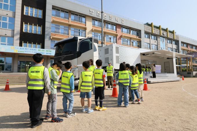 [서울=뉴스핌] 조수빈 기자 = 볼보트럭코리아는 지난 4월 23일과 30일 양일에 걸쳐 볼보트럭 본사가 위치한 경기도 동탄 인근의 초등학교 및 유치원을 찾아 '어린이 교통안전 캠페인(Stop-Look-Wave)'을 실시했다고 2일 밝혔다.