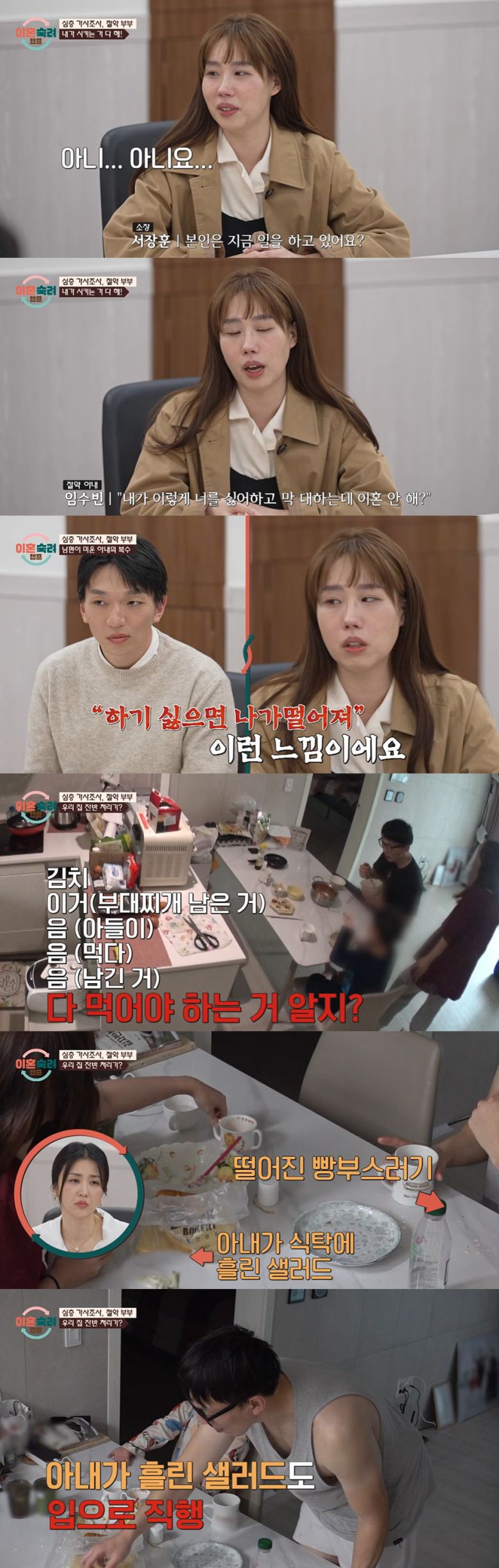 특히 아내가 남편을 잔반 처리기처럼 대하는 모습이 큰 충격을 안겼다. 아내는 "증정식"이라며 자신이 남긴 음식을 남편에게 건넸고, 이어 "김치, 아들이 먹다 남긴 거, 다 먹어야 하는 거 알지? 깨끗하게"라고 전했다.
