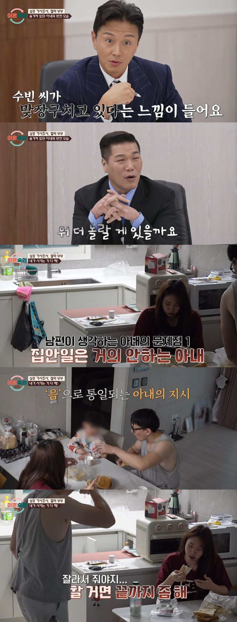계속된 영상에서도 아내의 명령이 계속되자 서장훈은 "남편의 사용 방법을 알고 이용하는 느낌이다. 헤어지자는 얘기, 이혼하자는 얘기만 안 하면 모든 걸 할 걸 아는 거다"고 일침했고, 아내는 "솔직히 맞다. '하기 싫으면 나가떨어져' 이런 느낌이다"고 말했다.