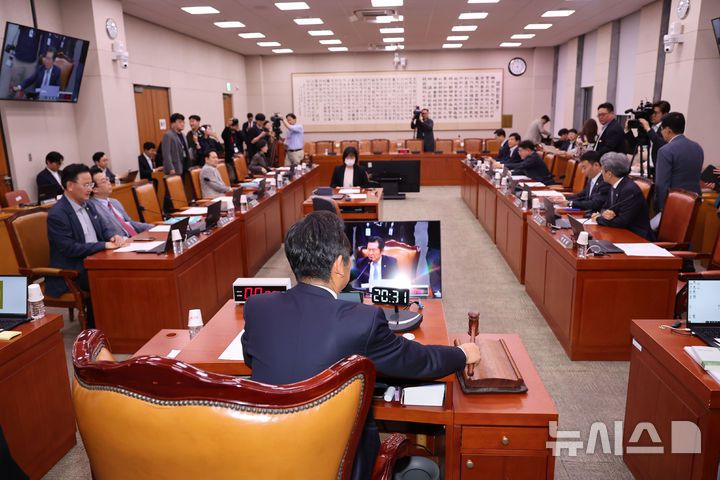 [서울=뉴시스] 권창회 기자 = 1일 서울 여의도 국회에서 열린 법제사법위원회 전체회의에서 정청래 법사위원장이 의사봉을 두드리고 있다. 2025.05.01. kch0523@newsis.com |
