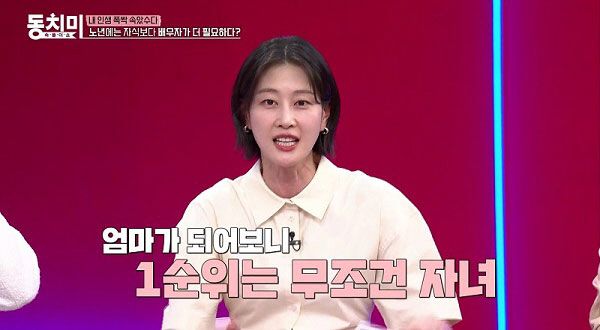 또 이현이는 "남편도 걱정할 정도였다. '이렇게 나를 좋아하는데 아이를 낳아도 괜찮겠느냐' '애나 볼 수 있겠느냐'고 말했다. 그런데 엄마가 되고 나니, 아이가 무조건 1순위가 되더라. 아이들을 위해 인생도 다 바칠 수 있을 것 같다. 그만큼 아내들은 자식들 보며 혼자 충분히 살 수 있을 것 같다"고 덧붙였다. 이에 MC 김용만은 "남편이 잠시 순위가 밀려나는 건 이해하지만, 숨소리조차 싫어졌다는 건 너무한 거 아니냐"고 속상함을 드러내 웃음을 안긴다.