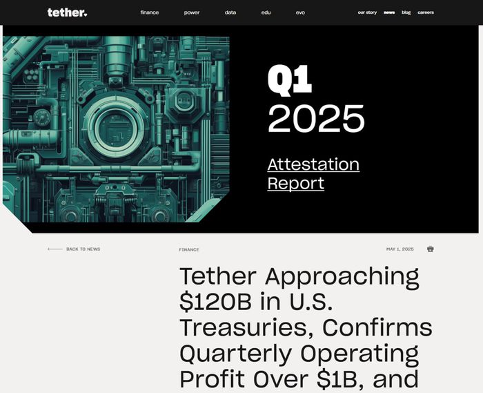 글로벌 최대 스테이블코인 발행사 테더는 지난 1분기 영억이익 10억달러를 기록했다고 밝혔다.