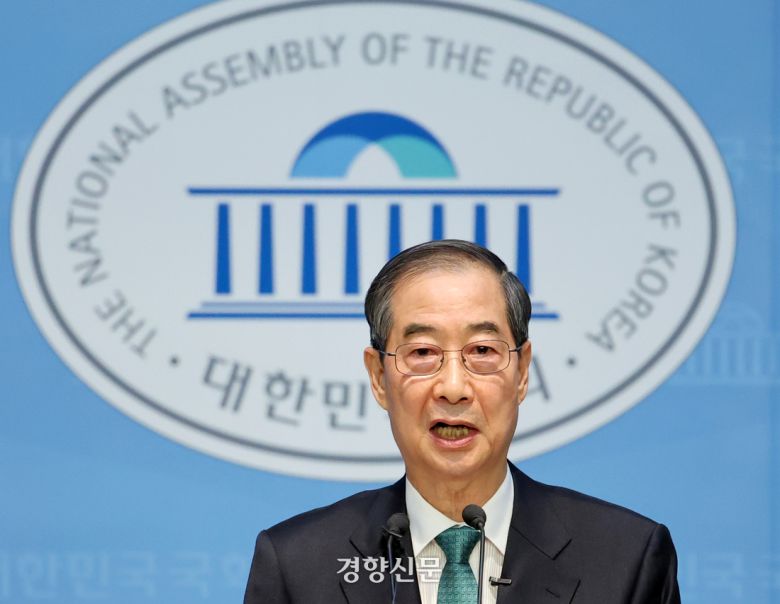 한덕수 전 국무총리가 2일 국회 소통관에서 대선 출마 선언을 하고 있다. 박민규 선임기자 |