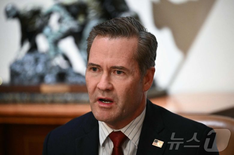 마이크 왈츠 백악관 국가안보보좌관이 지난 3월 25일 워싱턴 백악관에서 열린 도널드 트럼프 대통령과 미국 대사의 회의에 참석해 발언하고 있다. 트럼프 대통령은 1일(현지시간) 왈츠 안보보좌관을 사실상 경질하고 차기 유엔 미국 대사로 지명한다고 발표했다. 2025.05.02 ⓒ AFP=뉴스1 ⓒ News1 우동명 기자