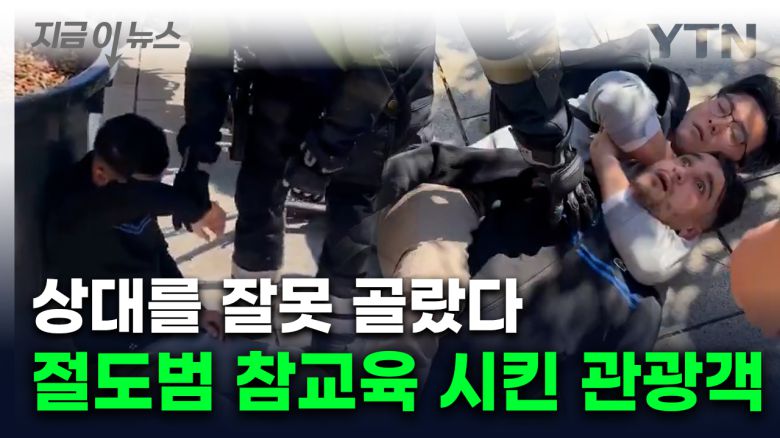 영상 속에서 사진작가로 추정되는 남성은 소매치기범을 바닥에 눕힌 채 목 조르기 기술을 사용하며 몸통을 다리로 고정해 도주를 막았습니다.