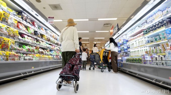 2일 오후 서울 시내 한 대형마트에서 시민이 장을 보고 있다. 소비자물가 상승률이 올해 들어 4개월째 2%대를 이어갔다. 특히 큰 상승폭을 보인 축산물은 33개월 만에, 수산물은 25개월 만에 가장 높은 상승률을 기록했다./사진=뉴시스 |