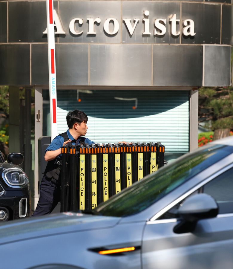 2025년 4월30일 서울 서초구 아크로비스타 앞에서 경찰 관계자가 검찰의 윤석열 집에 대한 압수수색이 끝난 뒤 바리케이드를 치우고 있다. 연합뉴스 |