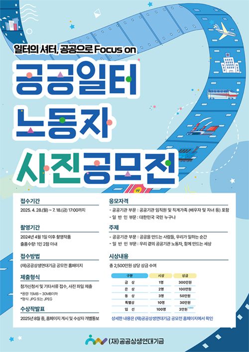 재단법인 공공상생연대기금 노광표 이사장은 “이번 사진공모전은 재단이 처음으로 개최하는 뜻깊은 행사로 공공부문 일터의 가치와 그 속에서 묵묵히 일하는 노동자들의 모습을 사진으로 기록하며, 시민과 함께 공공의 의미를 되새기는 출발점이 되길 기대한다”고 밝혔다.