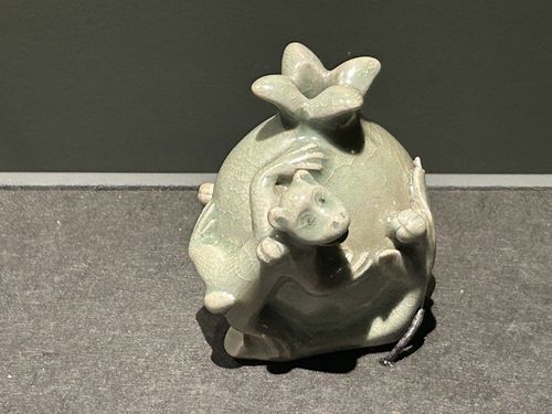 참외 모습을 본떠 만든 연적은 고려시대 유물 중에서는 유일한 것이다. 잎사귀 두 개를 서로 붙여서 물을 넣고 따르도록 한 점이 눈에 띈다. 같은 귀룡 장식이라도 용도에 따라 고개를 든 각도가 다른 점도 볼거리다.