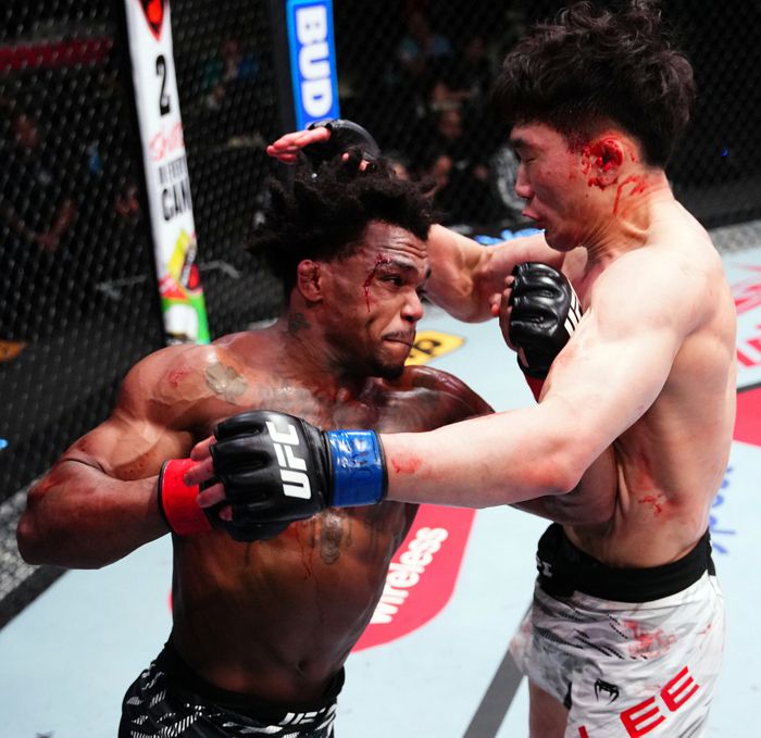 이창호와 코르테비어스 로미어스가 난타전을 벌이고 있다. 사진 | UFC